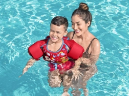 De populære figurer motiverer børn til vandlege og læring. Klar rød med blå detaljer forbedrer synligheden ved vandet.