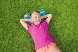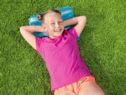 Puden er udstyret med en sikkerhedsventil, der forhindrer ufrivillig luftlækage. Ergonomiske riller på overfladen øger komforten, både når du ligger og sidder. I løbet af dagen fungerer den som en blød underlagspude, og om natten som en praktisk hovedpude – uden behov for pumpe.