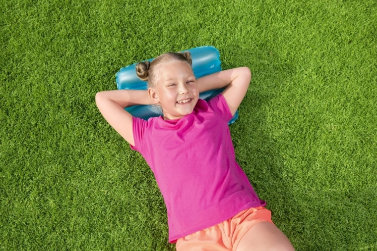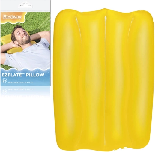 Den lette og kompakte oppustelige pude BESTWAY er ideel til camping, strand, picnic og bil. Slidstærk vinyl, sikkerhedsventil mod luftlækage og formede riller for ekstra komfort gør den til en pålidelig rejsemakker.