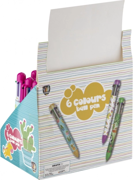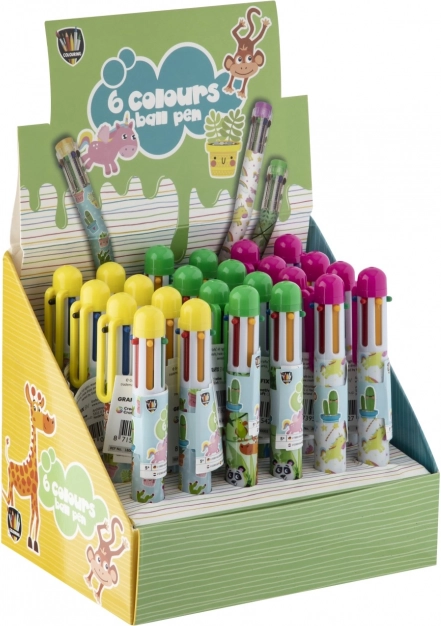 Praktisk seksfarvet kuglepen til hverdagsbrug. I ét hus får du seks nuancer til skrivning, understregning og fremhævning, så du nemt sparer plads i både penalhus og taske. Skiftet er hurtigt og behageligt, blækket skriver jævnt og efterlader en ren streg uden at tvære. Ideel til skole, kontor og på farten. Vælg mellem tre forskellige udførelser, og hav 6 farver i én pen altid lige ved hånden.