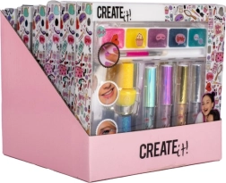 Dette farverige CREATE IT! makeup-sæt indeholder alt, børn behøver til at stifte sikkert bekendtskab med kosmetik. Metalliske nuancer og glitrende effekter skaber et originalt look til enhver børnefest eller eftermiddagsleg.