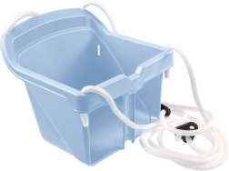 Denne pastelblå MOCHTOYS-gynge er designet specielt til små børn. Takket være den høje ryg og den forhøjede sikkerhedsbøjle giver den stabilitet, støtte og beskyttelse under gyngen. De stærke reb med færdige beslag muliggør hurtig og nem ophængning i haven eller hjemme i dørkarmen.