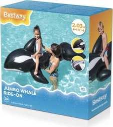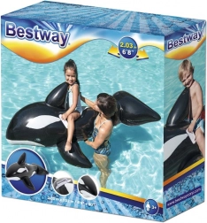 Den oppustelige spækhugger fra Bestway giver masser af vandleg for både små og større vandhunde. Takket være de generøse mål og den ergonomiske form sidder man komfortabelt, og stabiliteten sikres af dobbelte forstærkede håndtag. Det robuste materiale af PVC (vinyl) 0,27 mm tåler daglig brug og sommerens sjov.