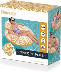 Slap af, find ro og få ny energi, mens du nyder det luksuriøse, fløjlsbløde Bestway Comfort Plush Deluxe-materiale. Materialet giver flyderen en glat og blød overflade, som er ideel til en dag ved poolen! Comfort Plush-materialet er perfekt til varme dage, fordi det sørger for, at overfladen på flyderen ikke bliver for varm i direkte sol. Når den kommer i vandet, bliver farverne mere intense og skaber en iøjnefaldende effekt. Med den komfortable pude kan du slappe af hele dagen og samtidig forblive både stilfuld og komfortabel! Den indbyggede kopholder gør det desuden muligt altid at have din yndlingsdrik eller snack lige ved hånden. Konstruktionen har en tovejs lynventil, som sikrer nem og effektiv oppustning og tømning. Comfort Plush Deluxe-ringen kan let foldes sammen og opbevares uden for sæsonen. Denne luksuriøse pool-flyder er ideel til sommerdage og er den perfekte måde at slappe af ved vandet på. En ubestridelig fordel ved ringen er, at den understøtter fysisk aktivitet. Læg den i tasken, og gør dig klar til mange solrige dage, du vil huske, uanset hvor dine sommeroplevelser fører dig hen.