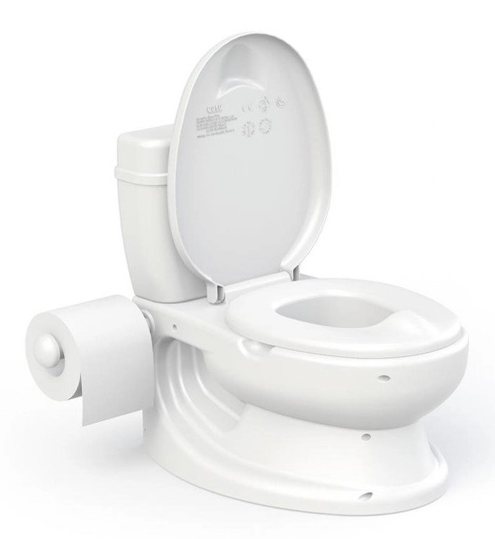 Knappen på den øverste del af potten afgiver en autentisk skyllelyd, som underholder og motiverer børn til regelmæssig brug af toilettet.