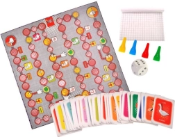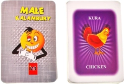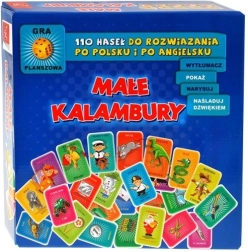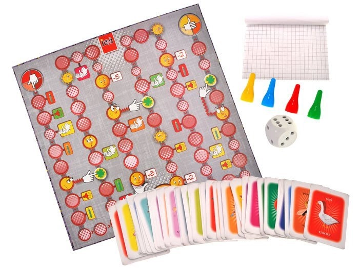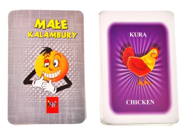 Sættet indeholder alt, der behøves til øjeblikkelig spil: spilleplade, 4 figurer, en terning, 110 kort med polske og engelske ord, en notatblok og instruktioner.