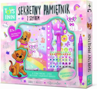 Hemmelig dagbog Secret Message med dyremotiv, kodelås og pen med usynligt blæk. Ideel til sikker, kreativ skrivning og hemmelige beskeder.