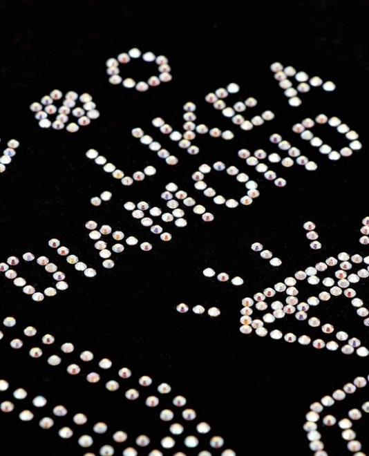 Læg motivet på rent og tørt tekstil og stryg det forsigtigt på gennem et beskyttelsesstof. Ved korrekt påføring holder det fast og tåler håndvask samt skånsom maskinvask op til 40 °C – vask altid på vrangen for at bevare rhinstenenes glans.