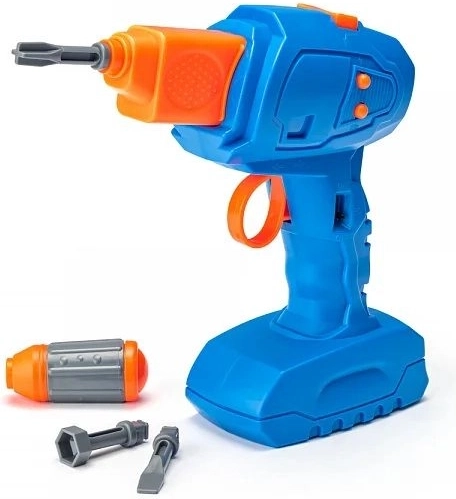 Der medfølger en børne-boremaskine, nem at betjene, med udskiftelige bits. Børn får en realistisk fornemmelse af montering og træner greb samt hånd–øje-koordination.