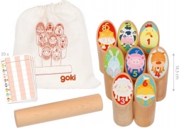 Dette traditionelle svenske spil i børneversion imponerer med enkle regler og solid udførelse i træ. Spillerne kaster en kastepind mod de nummererede kegler, tæller point og forsøger hurtigst muligt at nå den fastsatte sum. Takket være overskuelig pointtælling og en behagelig størrelse på pinde er spillet velegnet til små begyndere og hyggelige familiestunder – både ude og inde.
