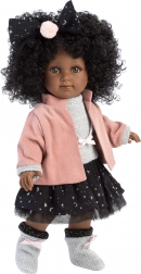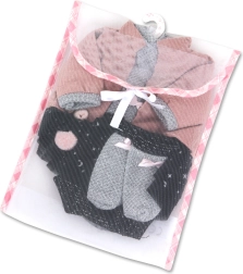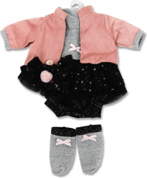 Bring ny stil til dine dukker med dette smukke kjolesæt til dukken Llorens. Dette 4-delte sæt inkluderer en smuk elastik med sløjfe designet til dukker af størrelsen 35 cm. Dette detaljerede sæt støtter kreativ leg og bringer samtidig elegance. Håndlavet i Spanien, hver del er unik. Pakken indeholder en plastikbøjle for praktisk opbevaring.