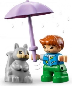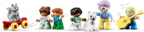Sættet er fyldt med tilbehør til fantasifulde scener – fra picnic under parasollen og havearbejde med trillebør og græskar til en tur på skateboard med hjelm. Fem figurer og tre dyr (fugl, kat, egern) inspirerer til rolleleg og fælles leg for børn og voksne.