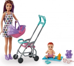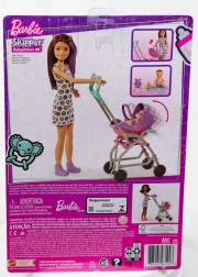 Oplev magien ved plejeleg med BARBIE Skipper Babysitter-sættet. Børn kan køre babyen i klapvognen, der gynger under kørsel, og takket være den aftagelige lift er det let at bære babyen. Den stilfulde dukke har sommerkjole og sko, og babyen samt farverigt tilbehør indbyder til endeløse historier.