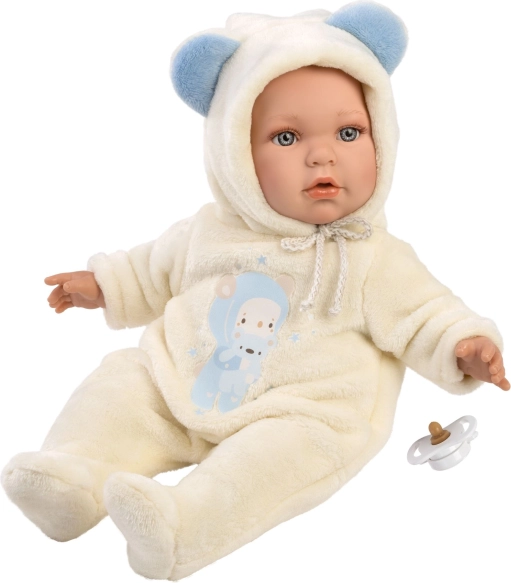 Udvid legemulighederne med kompatibelt originalt Llorens-tøj fra NEW BORN-kollektionen i størrelserne 40–42 cm eller 43–45 cm. Dukken er uden lyde, hvilket understøtter rolig og kreativ leg. Den medfølgende sut fungerer som et stilfuldt tilbehør.