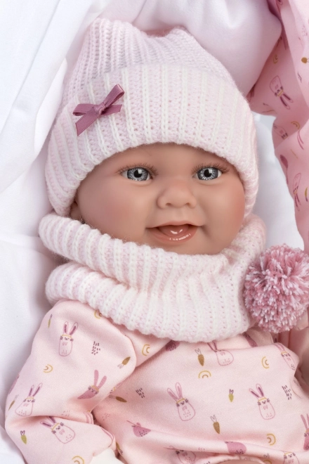 Opdag den charmerende Llorens NEW BORN – en realistisk babydukke med fuld vinylkrop, som kan bades. Omhyggeligt udførte detaljer på babykroppen, bevægelige lemmer og mulighed for at sidde vil glæde små omsorgspersoner. Leveres i en gaveæske, håndlavet i Spanien. Størrelse 40 cm, anbefalet fra 3 år.