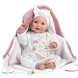 Denne realistiske Llorens New Born-dukke er designet til autentisk rolleleg som forælder. Den bløde stofkrop er behagelig at røre ved, og plastlemmer med led tillader naturlig positionering og siddestilling. Når man trykker på brystet, siger dukken “mama”, “papa” og begynder at græde naturtro, hvilket understøtter empatisk leg.
