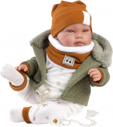 Inkluderer en sut som tilbehør og tøj af høj kvalitet; dukken er kompatibel med originalt Llorens-tøj 43–45 cm.