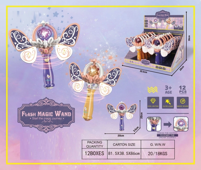 Gør dig klar til en verden fuld af magi med denne fantastiske tryllestav! Staven er udstyret med en knap, der aktiverer forskellige lys- og lydeffekter. Hvert tryk på knappen giver en ny magisk lyd, der stimulerer børns fantasi.