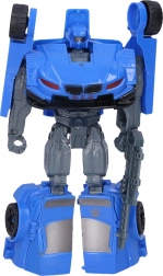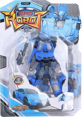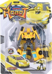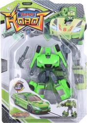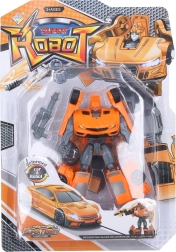 Autorobot 14 cm giver dobbelt sjov: på et øjeblik forvandler du den fra en iøjnefaldende sportsvogn til en actionrobot. Takket være friløbshjulene er kørslen glidende, og leddene i skuldre, albuer og ben muliggør nem posering og actionfyldte scener. Et våben er inkluderet, så robotten klarer enhver duel.