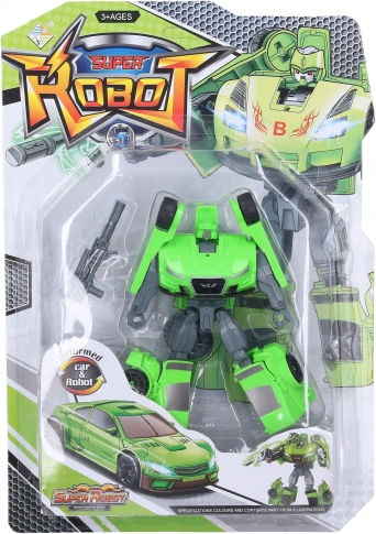 Modellen fås i 4 farvevarianter (grøn, blå, gul, orange), så alle kan finde en favorit. Robust plastkonstruktion, markante detaljer på karrosseri og robotpanser samt intuitiv transformation gør dette legetøj til en ideel gave til små fans af teknologi og robotter.