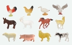 Sæt med 12 gårddyrfigurer i størrelsen 10 cm er ideel til enhver lille dyreelsker. Perfekt til leg og udvikling af børns fantasi.