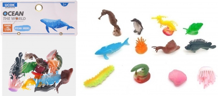 Sættet indeholder 12 forskellige havdyr.
