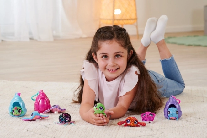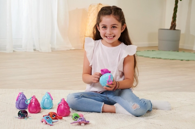 Pearly Pods viser undervandsverdenen for vores små venner. De søde små havdyr bor i deres egne skaller og kan kigge ud gennem en lille skydedør. Du kan tage din havven med i skallen takket være den praktiske nøglering. Sød undervandsfauna i glitrende design, og nogle med en helt unik perle!