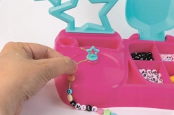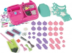 Lav originale accessories, der udtrykker din personlighed. CRAZY CHIC-sættet kombinerer bogstavperler, farvede dekorative elementer og glitrende rhinsten, så du nemt kan designe armbånd, halskæder og vedhæng med din egen tekst. Takket være den praktiske base opdelt i tre dele har du altid perler, rhinsten og færdige smykker lige ved hånden.