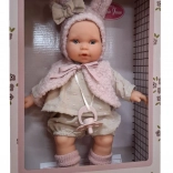 Den søde dukke Antonio Juan Kika i størrelsen 27 cm er som en rigtig baby – den har et blødt stofkrop, vinylhoved og -lemmer, reagerer på en magnetisk sut, og når den tages ud, græder den og siger “mama”, “papa”. Leveres i en gaveæske, er håndlavet, og dele af tøjet er lavet af økologisk bomuld. Velegnet fra 2 år.