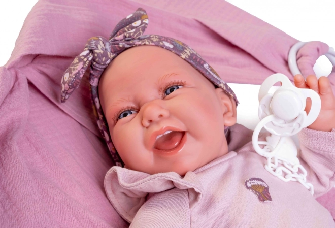 Dukken har realistiske ansigtstræk og lemmer, hvilket gør den til en tro model af en rigtig baby.