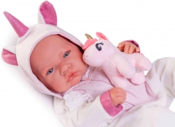 Denne realistiske dukke er skabt med hensyn til detalje og autenticitet. Fremstillet af specielt blødt vinyl, der er meget behageligt at røre ved, tilbyder dukken en følelse af realisme takket være dens afbildede folder og detaljer inklusive køn.