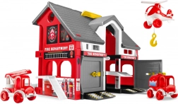 Sættet indeholder et hus med åbningsbare døre, en elevator og 3 køretøjer – helikopter, brandbil og vandtankvogn. Der medfølger 34 klistermærker til personalisering, krog, beholdere til sand og vand samt et håndtag på taget for nem transport. Legen udvikler fantasi, kreativitet og psykomotoriske færdigheder og egner sig både til fælles og selvstændig underholdning.