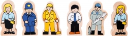 Broerne og bygningerne i sættet giver barnet mulighed for at skabe realistiske scenarier og lære om forskellige roller i samfundet gennem leg.