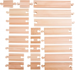 Kvalitetsforarbejdning af træskinnerne sikrer sikker leg og nem montering af forskellige jernbaneruter.