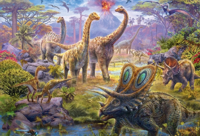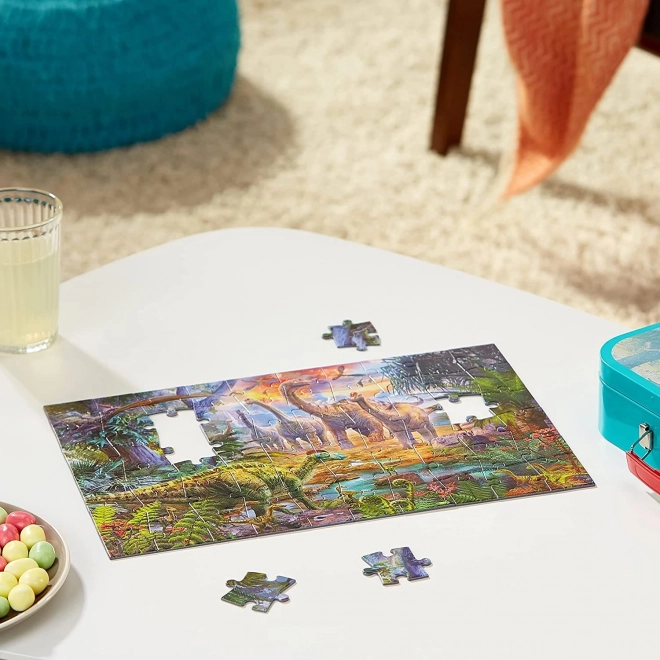 Hvert puslespil tilbyder en anden scene fra den præhistoriske verden, forskellige typer dinosaurer er afbildet i detaljerede illustrationer.